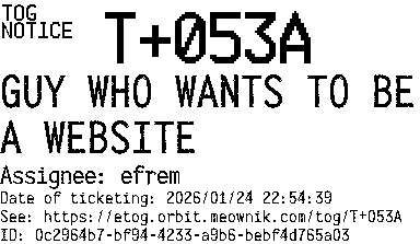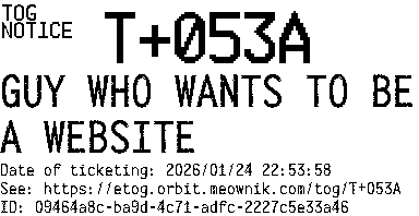 Orbit eTOG Listing Service: T+053A GUY WHO WANTS TO BE A WEBSITE