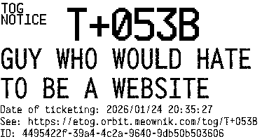 Orbit eTOG Listing Service: T+053B GUY WHO WOULD HATE TO BE A WEBSITE