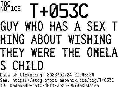 Orbit eTOG Listing Service: T+053C GUY WHO HAS A SEX THING ABOUT WISHING THEY WERE THE OMELAS CHILD