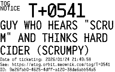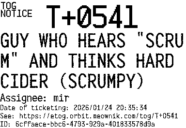 Orbit eTOG Listing Service: T+0541 GUY WHO HEARS "SCRUM" AND THINKS HARD CIDER (SCRUMPY)