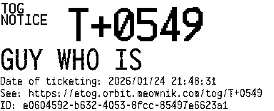 Orbit eTOG Listing Service: T+0549 GUY WHO IS