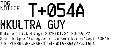 Orbit eTOG Listing Service: T+054A MKULTRA GUY