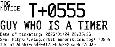 Orbit eTOG Listing Service: T+0555 GUY WHO IS A TIMER