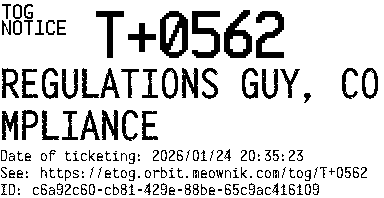 Orbit eTOG Listing Service: T+0562 REGULATIONS GUY, COMPLIANCE