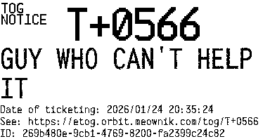 Orbit eTOG Listing Service: T+0566 GUY WHO CAN'T HELP IT