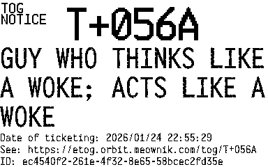 Orbit eTOG Listing Service: T+056A GUY WHO THINKS LIKE A WOKE; ACTS LIKE A WOKE