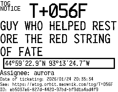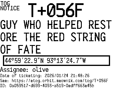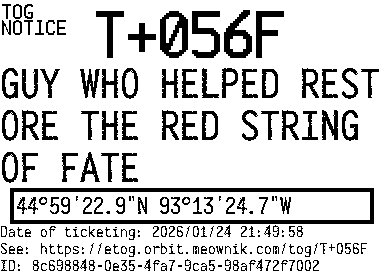 Orbit eTOG Listing Service: T+056F GUY WHO HELPED RESTORE THE RED STRING OF FATE