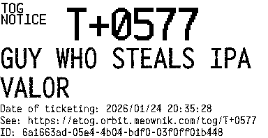 Orbit eTOG Listing Service: T+0577 GUY WHO STEALS IPA VALOR