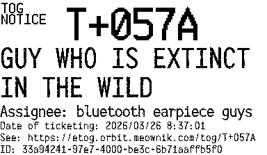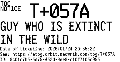 Orbit eTOG Listing Service: T+057A GUY WHO IS EXTINCT IN THE WILD