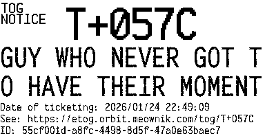 Orbit eTOG Listing Service: T+057C GUY WHO NEVER GOT TO HAVE THEIR MOMENT