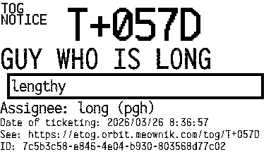 Orbit eTOG Listing Service: T+057D GUY WHO IS LONG