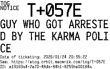 Orbit eTOG Listing Service: T+057E GUY WHO GOT ARRESTED BY THE KARMA POLICE