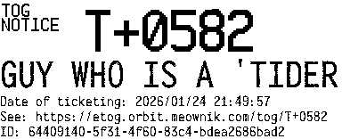 Orbit eTOG Listing Service: T+0582 GUY WHO IS A 'TIDER