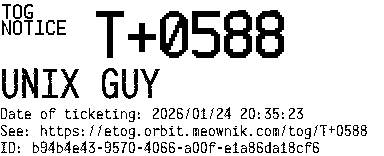 Orbit eTOG Listing Service: T+0588 UNIX GUY