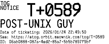 Orbit eTOG Listing Service: T+0589 POST-UNIX GUY