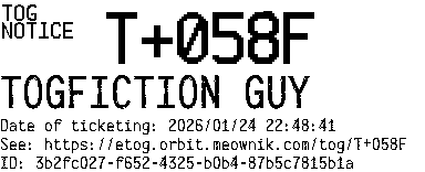 Orbit eTOG Listing Service: T+058F TOGFICTION GUY