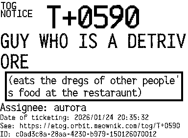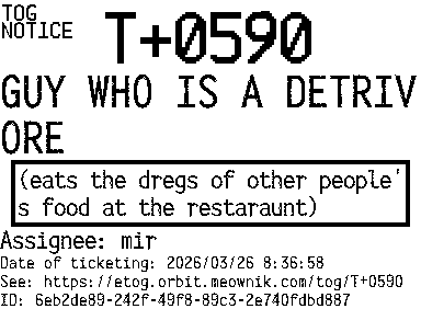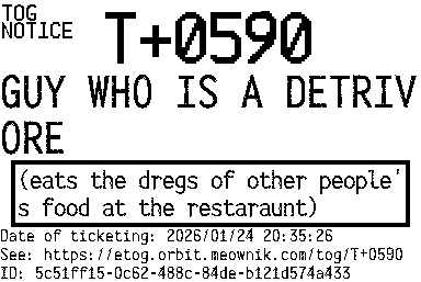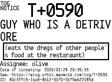Orbit eTOG Listing Service: T+0590 GUY WHO IS A DETRIVORE