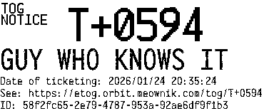 Orbit eTOG Listing Service: T+0594 GUY WHO KNOWS IT