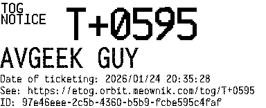 Orbit eTOG Listing Service: T+0595 AVGEEK GUY
