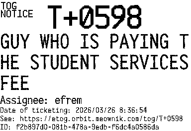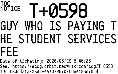 Orbit eTOG Listing Service: T+0598 GUY WHO IS PAYING THE STUDENT SERVICES FEE