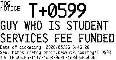 Orbit eTOG Listing Service: T+0599 GUY WHO IS STUDENT SERVICES FEE FUNDED