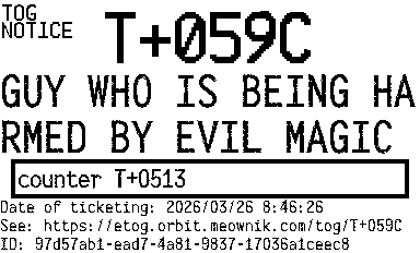 Orbit eTOG Listing Service: T+059C GUY WHO IS BEING HARMED BY EVIL MAGIC