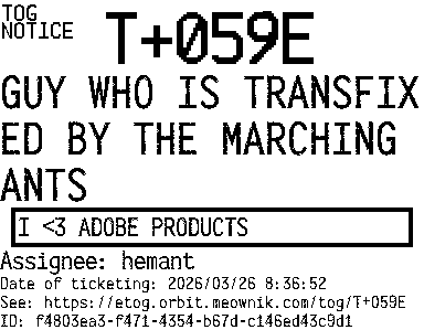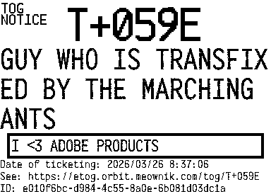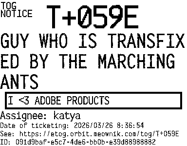 Orbit eTOG Listing Service: T+059E GUY WHO IS TRANSFIXED BY THE MARCHING ANTS