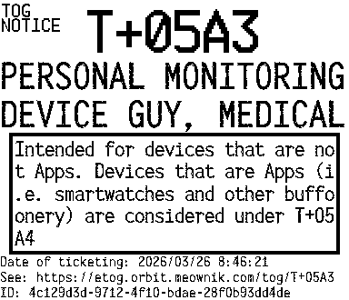 Orbit eTOG Listing Service: T+05A3 PERSONAL MONITORING DEVICE GUY, MEDICAL