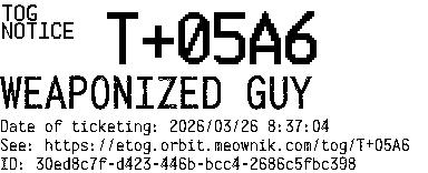 Orbit eTOG Listing Service: T+05A6 WEAPONIZED GUY