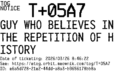 Orbit eTOG Listing Service: T+05A7 GUY WHO BELIEVES IN THE REPETITION OF HISTORY
