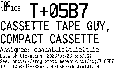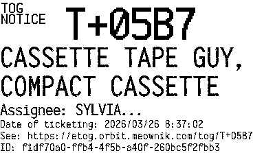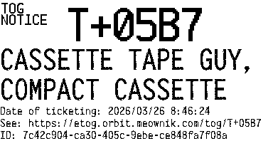 Orbit eTOG Listing Service: T+05B7 CASSETTE TAPE GUY, COMPACT CASSETTE