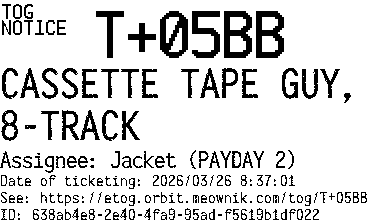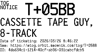 Orbit eTOG Listing Service: T+05BB CASSETTE TAPE GUY, 8-TRACK