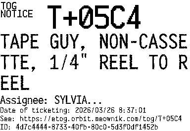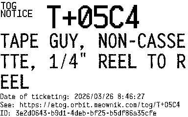 Orbit eTOG Listing Service: T+05C4 TAPE GUY, NON-CASSETTE, 1/4" REEL TO REEL