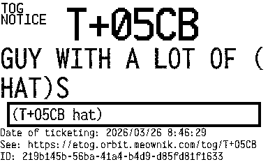 Orbit eTOG Listing Service: T+05CB GUY WITH A LOT OF (HAT)S