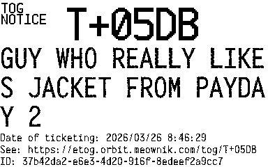 Orbit eTOG Listing Service: T+05DB GUY WHO REALLY LIKES JACKET FROM PAYDAY 2