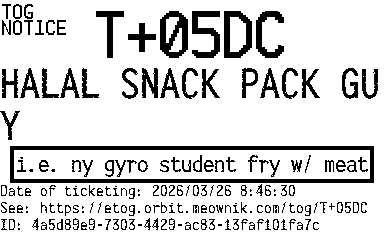 Orbit eTOG Listing Service: T+05DC HALAL SNACK PACK GUY