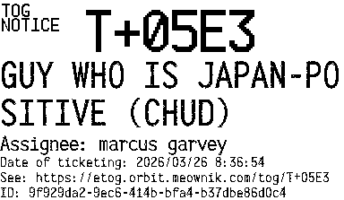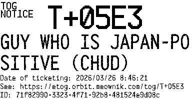Orbit eTOG Listing Service: T+05E3 GUY WHO IS JAPAN-POSITIVE (CHUD)