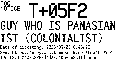 Orbit eTOG Listing Service: T+05F2 GUY WHO IS PANASIANIST (COLONIALIST)