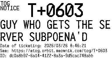 Orbit eTOG Listing Service: T+0603 GUY WHO GETS THE SERVER SUBPOENA'D