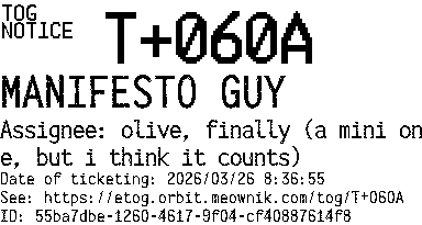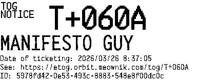 Orbit eTOG Listing Service: T+060A MANIFESTO GUY