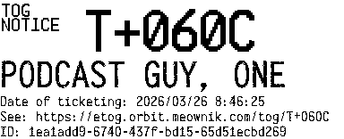 Orbit eTOG Listing Service: T+060C PODCAST GUY, ONE