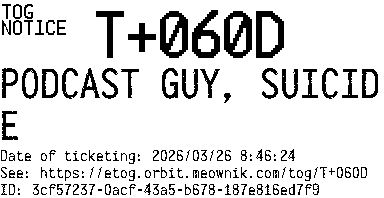 Orbit eTOG Listing Service: T+060D PODCAST GUY, SUICIDE