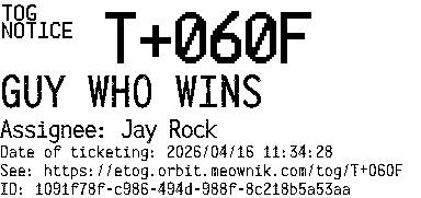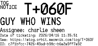 Orbit eTOG Listing Service: T+060F GUY WHO WINS