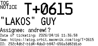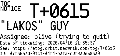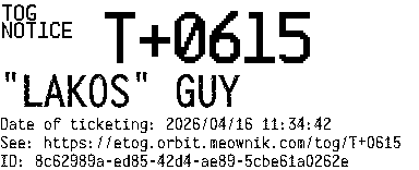 Orbit eTOG Listing Service: T+0615 "LAKOS" GUY