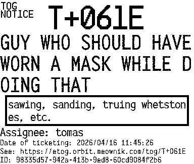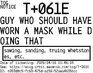 Orbit eTOG Listing Service: T+061E GUY WHO SHOULD HAVE WORN A MASK WHILE DOING THAT